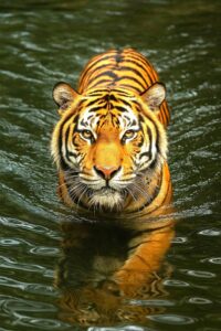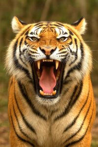 Taky se doporučuje, když už vás tygr vidí, abyste se udělali většími. Doslova největšími na celém světě, protože v tu chvíli jde o život. Zvedněte ruce nad hlavu, vylezte na nějaký kámen nebo pařez a neohroženě se na tygra dívejte. Možná pak útok vzdá, protože rád útočí nečekaně a zezadu.