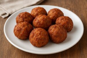 - Kuličky smažíme několik minut z každé strany do zlatova až zlatohněda.