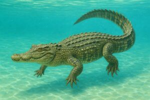 Řekli byste, že krokodýl mořský žije v moři, tedy ve slané vodě. Jenže jemu nevadí ani ta sladká. Vlastně to má nejradši namíchané, což je v místech, kde se řeka nebo potok vlévá do moře. Takové vodě se říká brakická. Krokodýl mořský klidně plave řekou i stovky kilometrů do vnitrozemí. Zvlášť v období dešťů, když jsou toky rozvodněné. A pokud si myslíte, že v moři se drží jen u břehu, tak jste taky na omylu. Můžete ho potkat daleko na širém moři.