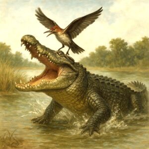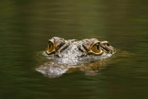 Taky může číhat pod vodou, protože umí zadržet dech na dvě hodiny. Vypadá líně, ale tím děsivěji pak překvapí, když se bleskurychle vymrští. Dokáže při tom víc než polovinu těla vyšvihnout nad hladinu. A stisk jeho čelistí je 40x silnější než u člověka. Nebezpečné je někdy i chytání ryb z malé loďky. Jsou známé případy, že krokodýl plavidlo převrhl. Určitě nechoďte do blízkosti vody za šera nebo dokonce za tmy.